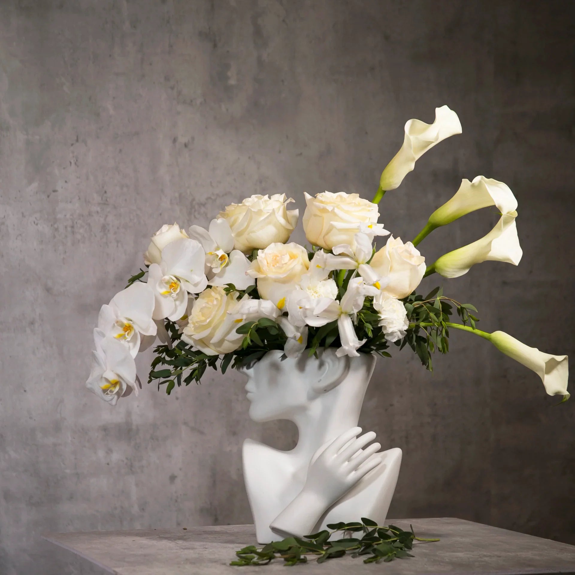 This creation is for those who appreciate sophistication and uniqueness in every detail. We associate white with purity, kindness, and peace—qualities beautifully reflected in this bouquet. Available in pink, white, purple, or mixed colors, it’s the perfect addition to your home, bringing an atmosphere of tranquility and heartfelt love.
