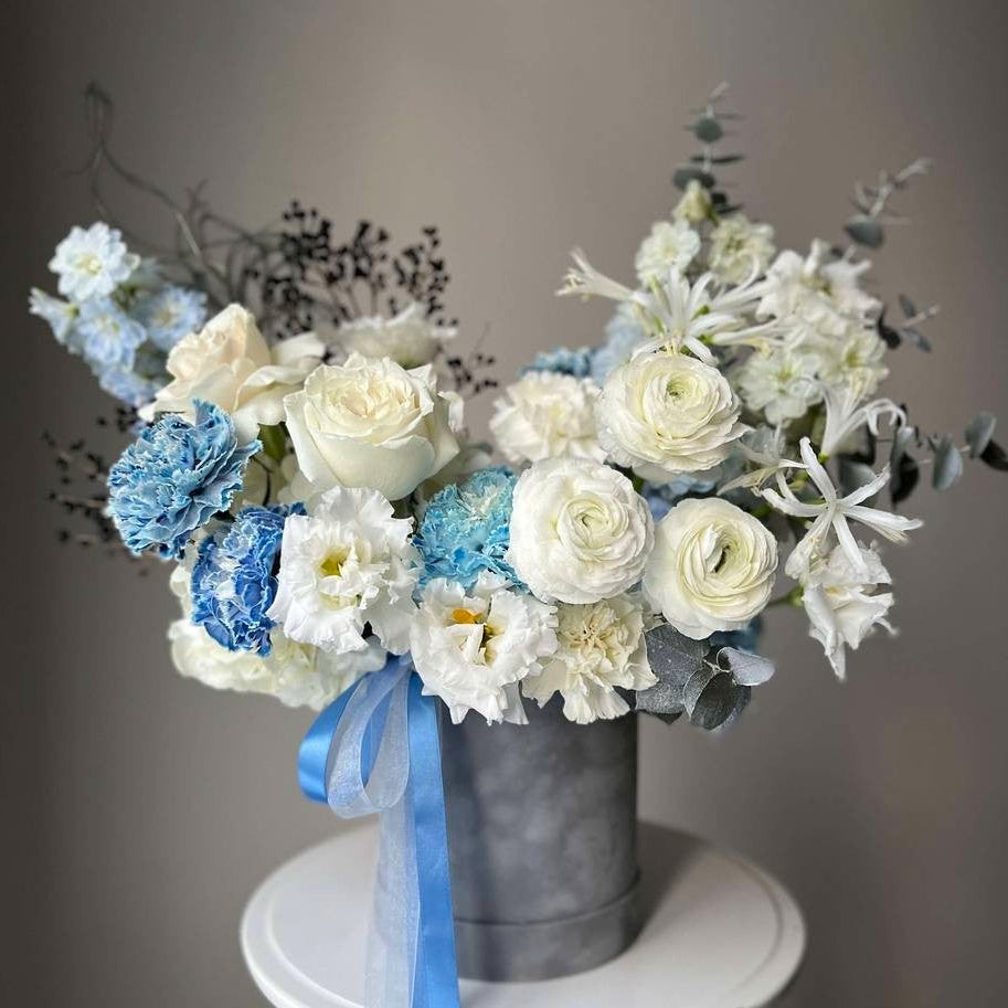 Thoughtfully arranged in a natural woven basket and finished with delicate satin ribbon, Raya makes an unforgettable impression — whether it’s a heartfelt gift or a centerpiece of minimalist beauty.